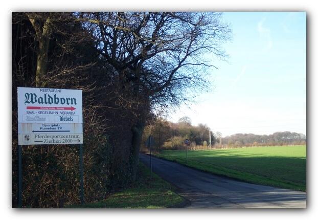 Die Straße "Am Sportplatz" führ an einem Relikt des altem Mühlenwinkel, dem Waldborn, vorbei und mündet in die Bonertstraße. Von hier aus ist die Gaststätte "Am Waldborn" schnell erreicht.